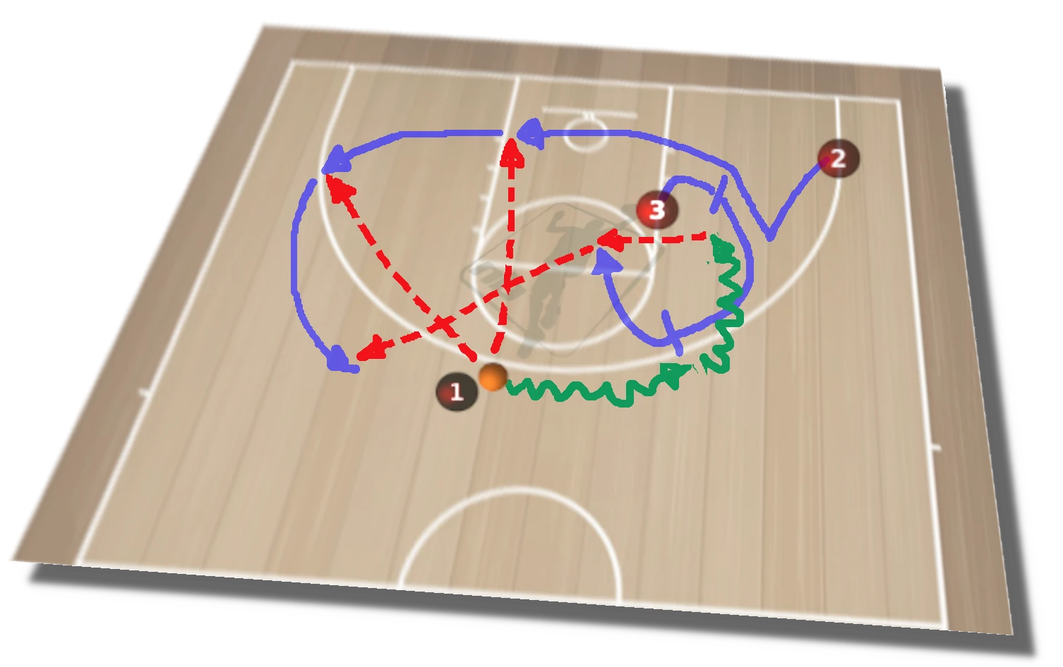 Además hay que inculcar en la mente del jugador que no es lo mismo jugar con el balón en las manos que sin él. Con el balón, el jugador debe aprender ante todo a mirar, evidentemente eso en una milésima de segundo, y decidir: si tengo ventaja, ejecuto; si no tengo ventaja, finto (básico) y ejecuto la mejor opción. Sin balón, el jugador debe siempre :